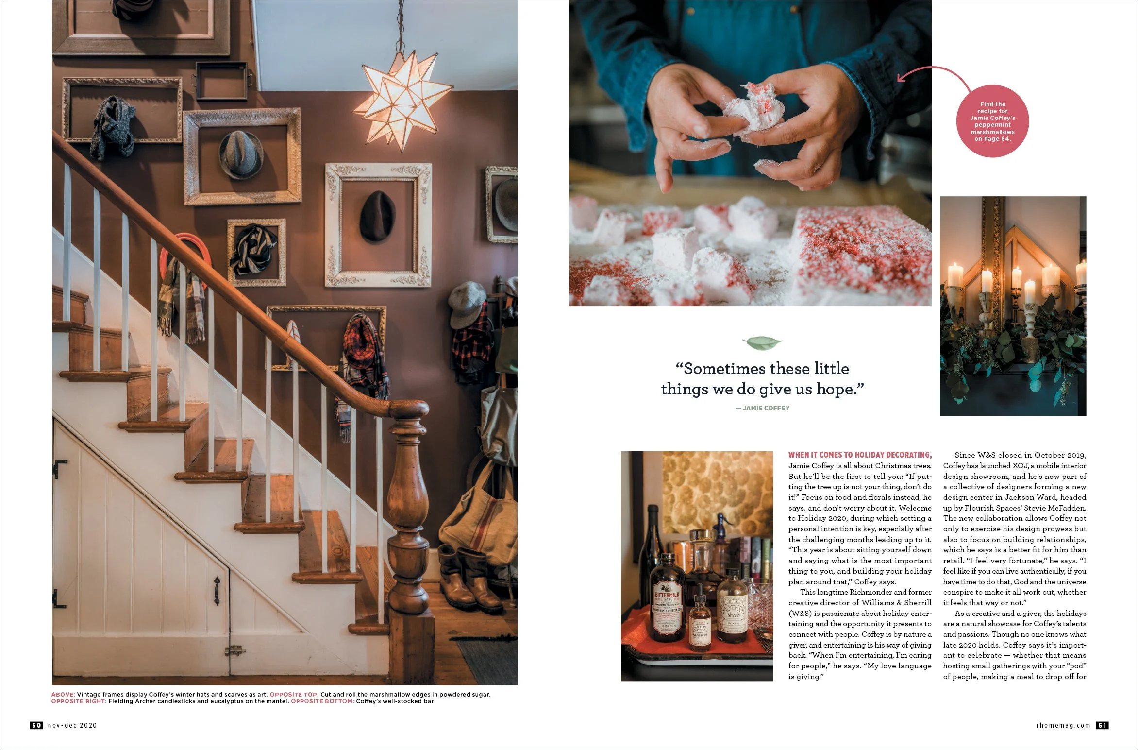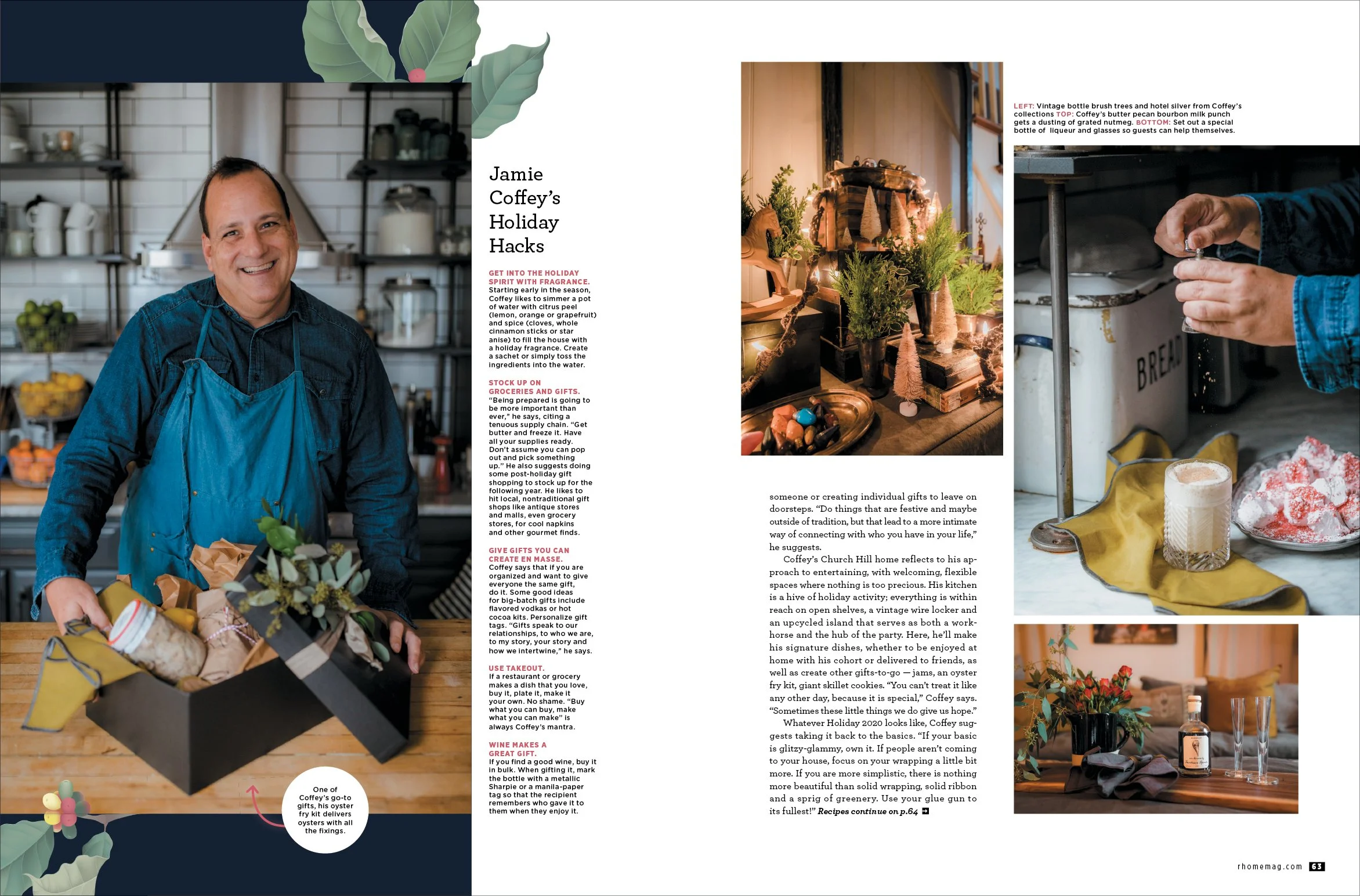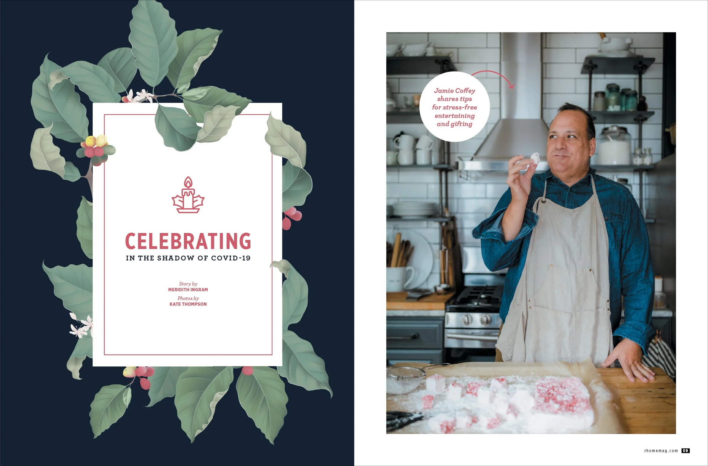 This cover story of R•Home featured the charismatic Jamie Coffey to spread some hope during the gloomy holiday season of 2020. It included tips and recipes for gifting and entertaining safely during the pandemic.